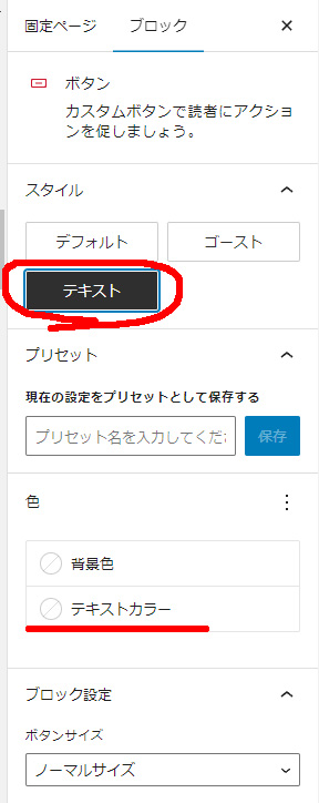 snow-monkeyのボタン装飾を選択して、テキストに設定。