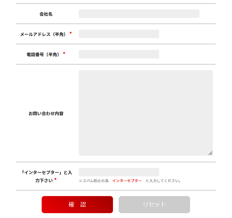 <th>「インターセプター」と入力下さい<span class="hissu">*</span></th>