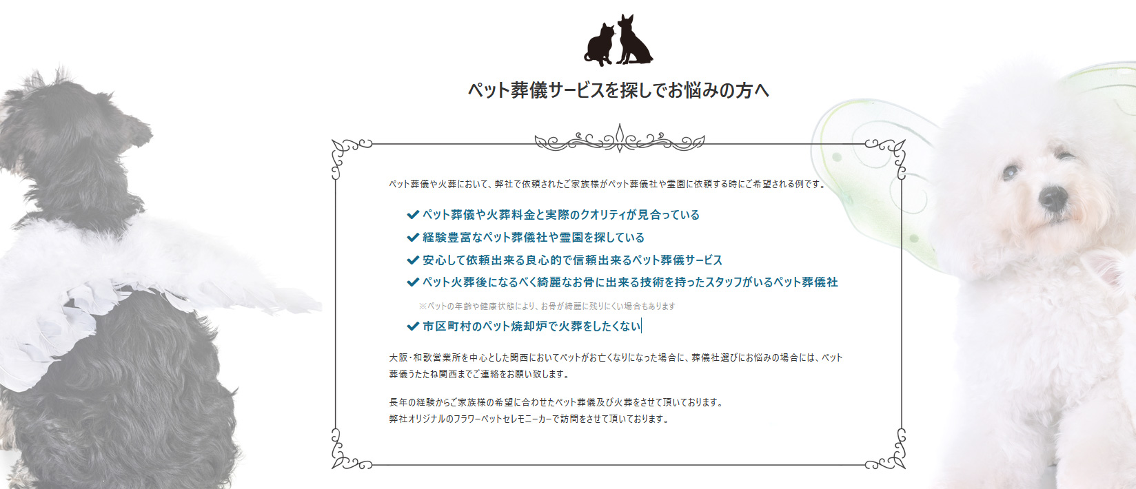 <li>安心して依頼出来る良心的で信頼出来るペット葬儀サービス</li>