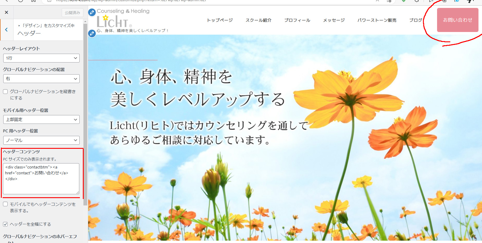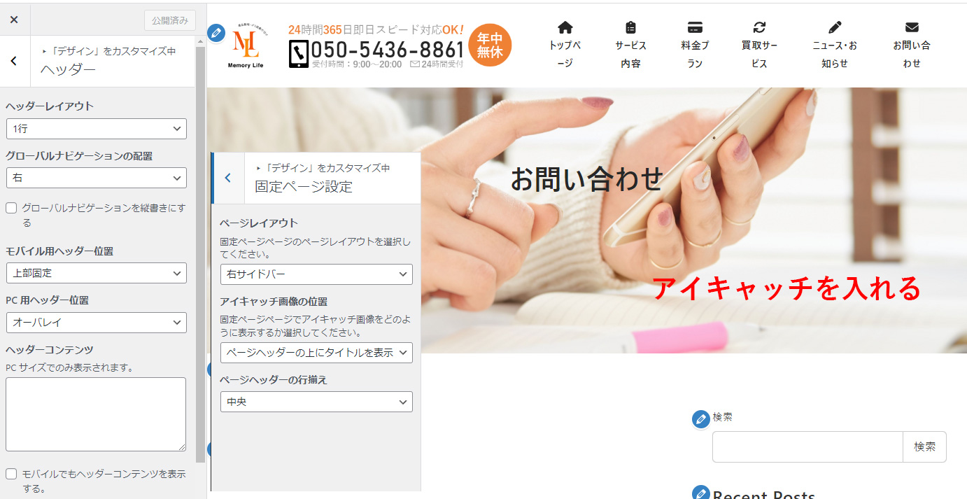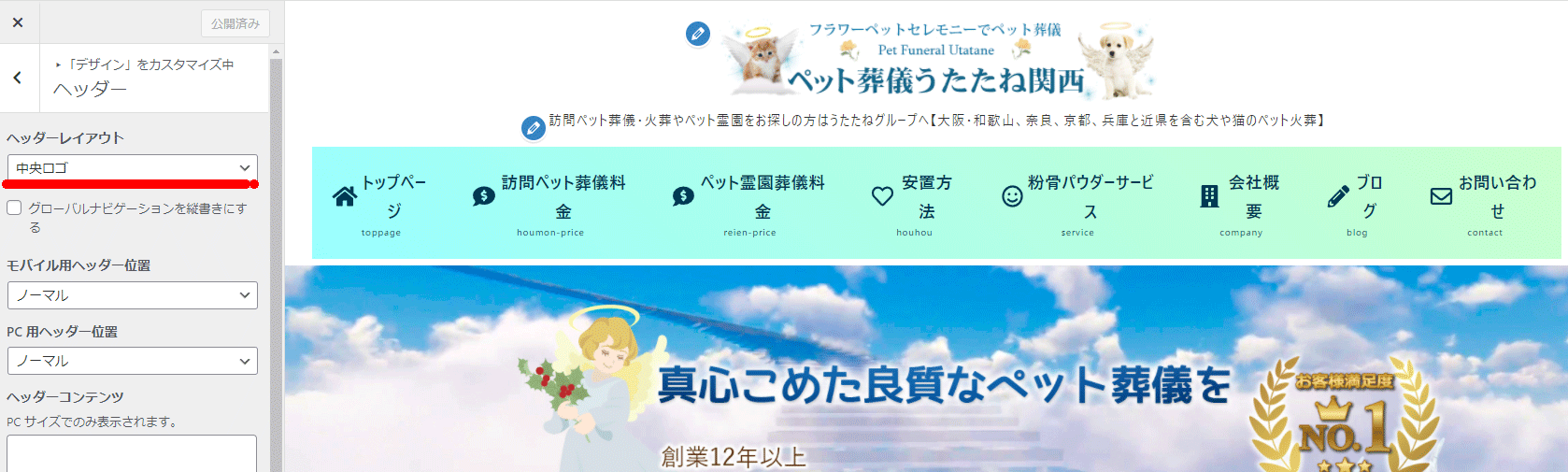 ヘッダーエリアの変更:グローバルナビ