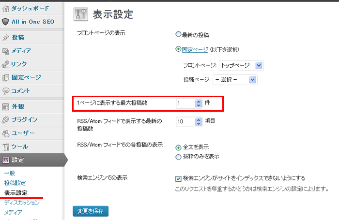 通常は「設定」→「表示設定」で投稿の表示件数を指定出来る。