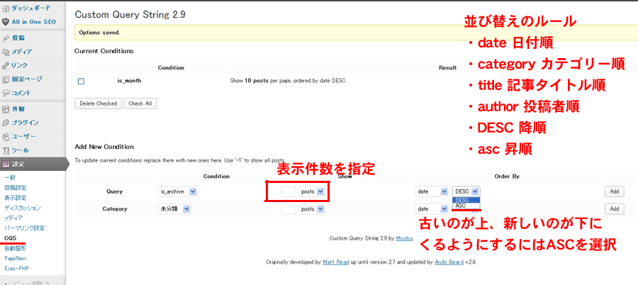 が、これだと、ずべてのページで件数表示が同じに設定されてしまう為、個別に投稿件数を変更したい場合には、上記プラグインを導入する。