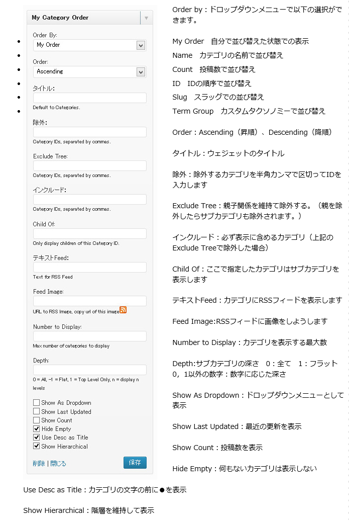 変更したカテゴリを表示させるのは「ウィジェット」開くと「My Category Order」があります。